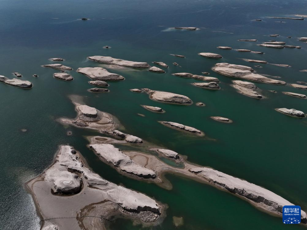 這是4月22日在海西蒙古族藏族自治州境內(nèi)拍攝的西臺(tái)吉乃爾湖一角(無(wú)人機(jī)照片)。新華社記者 張龍 攝
