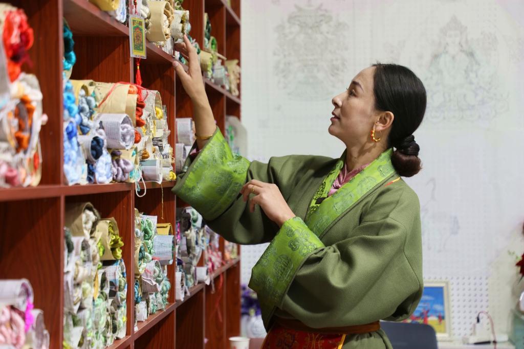 拉毛葉忠的藏繡公司成立以來,不僅培養(yǎng)了上千名藏繡人才,還通過采取“公司+農(nóng)戶”的模式,為貧困農(nóng)牧民提供就業(yè)崗位或簽訂收購協(xié)議,吸引幾百名婦女從事藏繡生產(chǎn),實(shí)現(xiàn)了農(nóng)牧民在“家門口”就業(yè)。