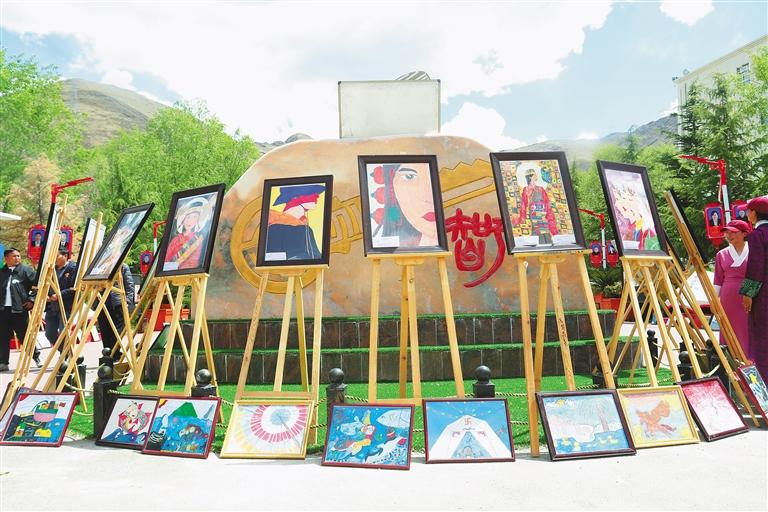 中國(guó)藏族網(wǎng)通訊 近日,拉薩市墨竹工卡縣中學(xué)舉行了以《我們有“畫”說(shuō)》為主題的師生繪畫展活動(dòng),200余幅作品內(nèi)容涉及民族團(tuán)結(jié)、愛(ài)護(hù)環(huán)境、人物等,色彩明快、構(gòu)思巧妙,傾訴著師生們對(duì)祖國(guó)的深情摯愛(ài)。