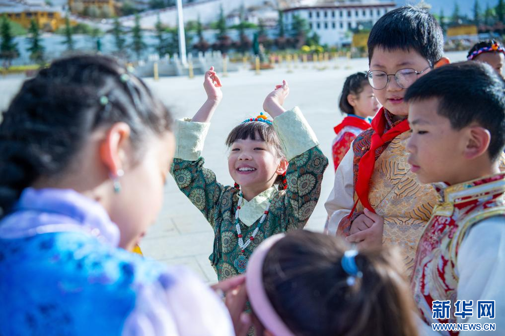 6月1日,小朋友們在布達拉宮廣場歡慶“六一”國際兒童節(jié)。新華網 旦增努布 攝