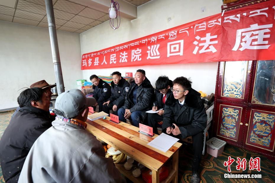 瑪多縣地處黃河源頭,是黃河發(fā)源后流經(jīng)的第一個(gè)縣城?,敹嗥骄0纬?500米,是青海省海拔最高的縣,也是人類生存環(huán)境最惡劣的地區(qū)之一,加上地廣人稀,交通不便,法官調(diào)查取證難、送達(dá)難,農(nóng)牧民參與訴訟難。1957年,瑪多縣人民法院成立之初就成立了“馬背法庭”。巡回法庭的的法官經(jīng)常帶著干糧,騎著馬找到當(dāng)事人,就地審理案件。