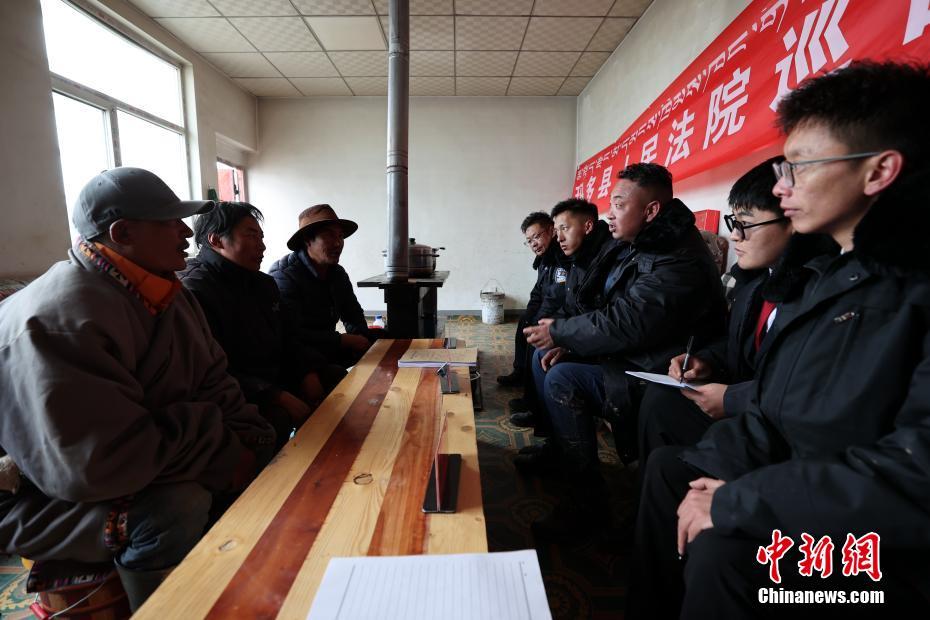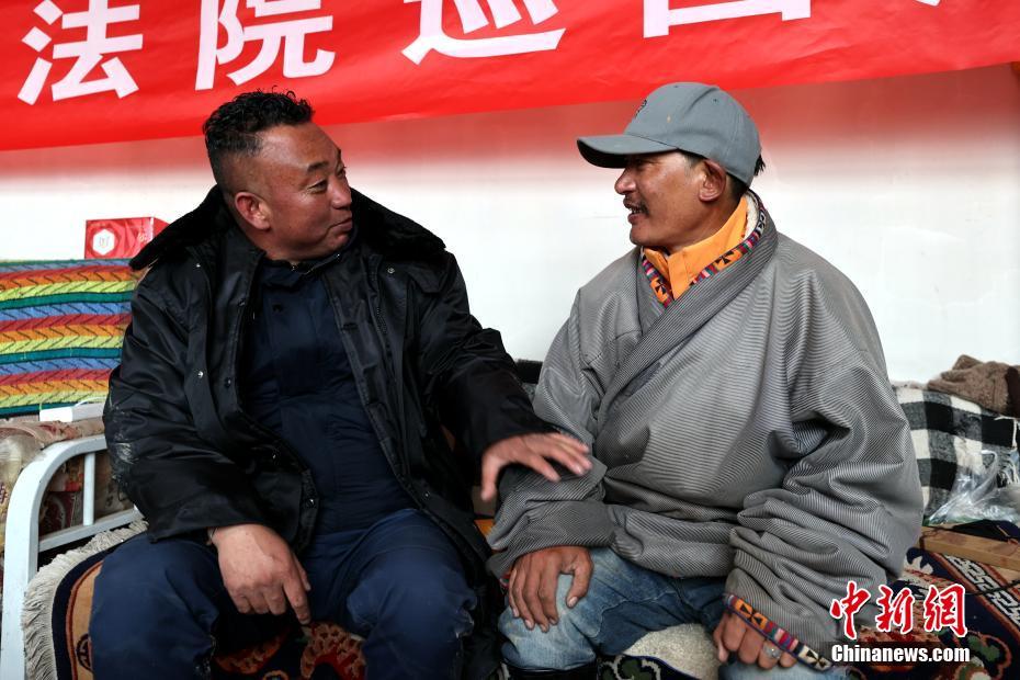 6月3日,在青海省果洛藏族自治州瑪多縣花石峽鎮(zhèn),瑪多縣人民法院“馬背法庭”的法官在牧民家中進(jìn)行訴前調(diào)解。薛蒂 攝