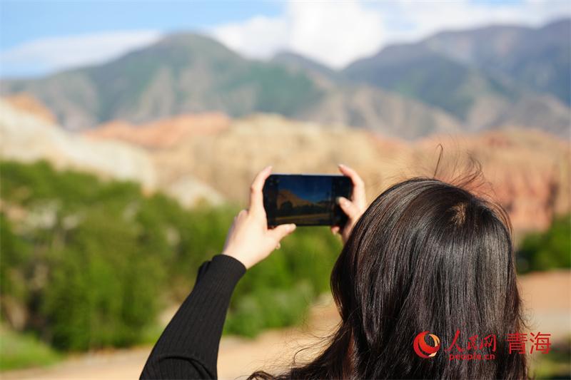 游客在青海貴德國家地質(zhì)公園拍照。人民網(wǎng)記者 甘海瓊攝