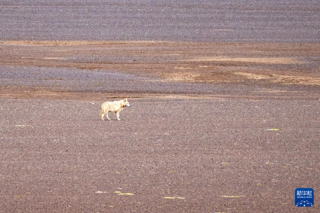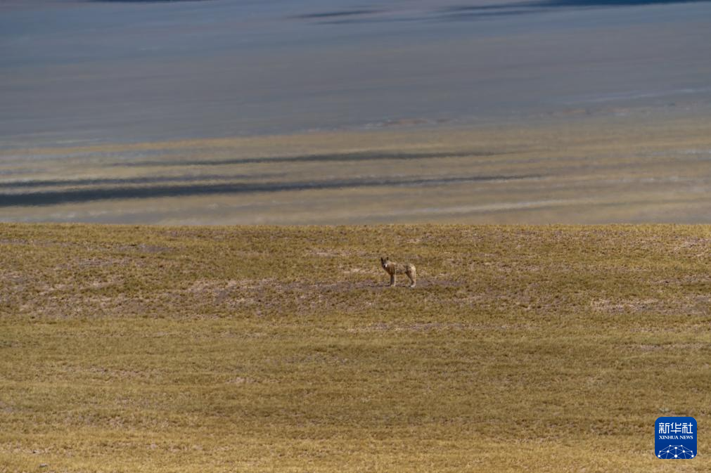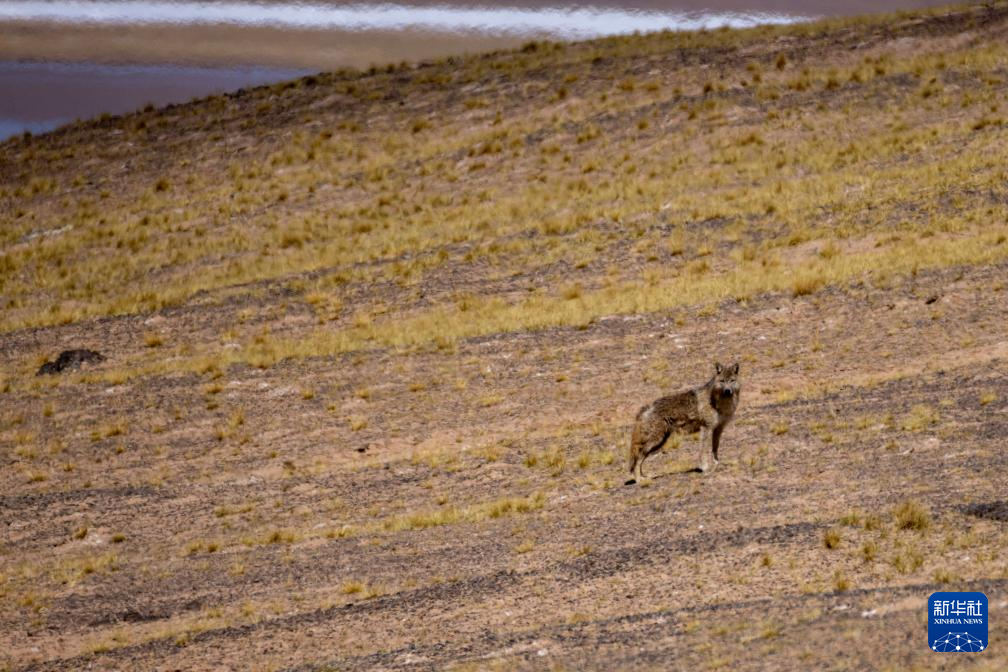 草原上伺機而動的野狼(6月13日攝)。新華社記者 旦增尼瑪曲珠 攝