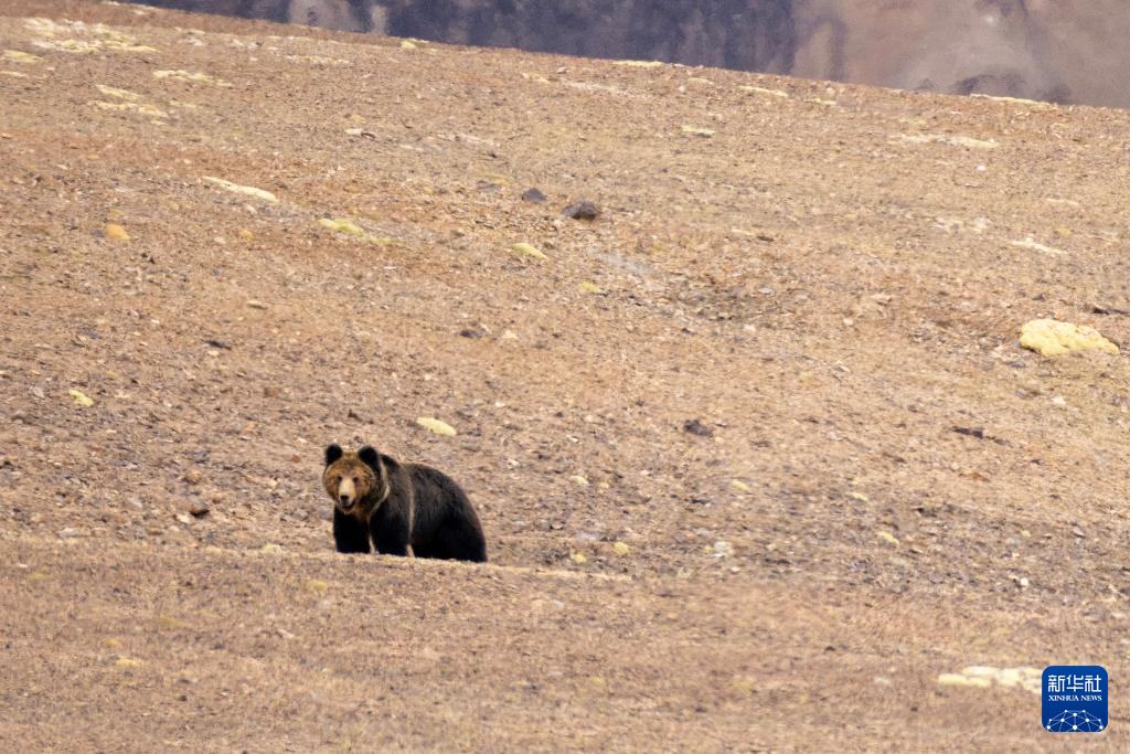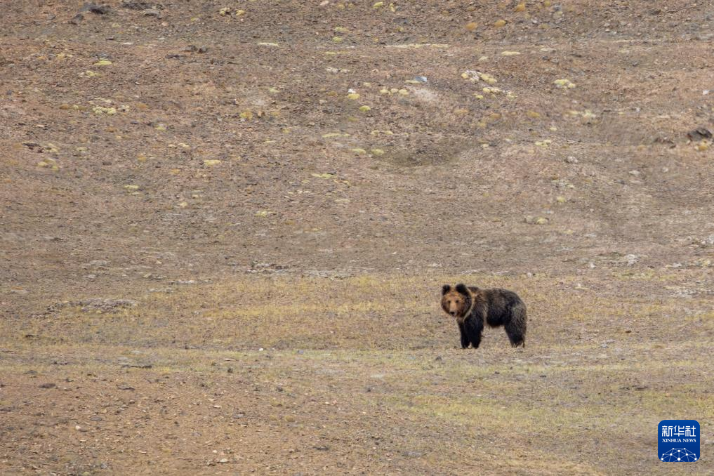 草原上伺機而動的棕熊(6月13日攝)。新華社記者 旦增尼瑪曲珠 攝