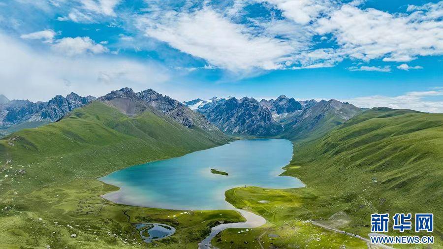 在果洛州久治縣境內(nèi)拍攝的年保玉則(無(wú)人機(jī)照片)。新華網(wǎng) 宋忠勇 攝