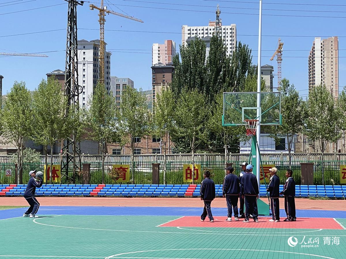 果洛西寧民族中學(xué)的學(xué)生正在打籃球。人民網(wǎng) 況玉 攝
