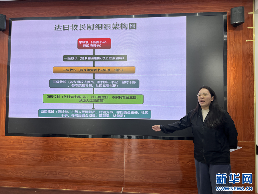 達(dá)日縣牧長制組織構(gòu)架圖。新華網(wǎng) 魚昊 攝