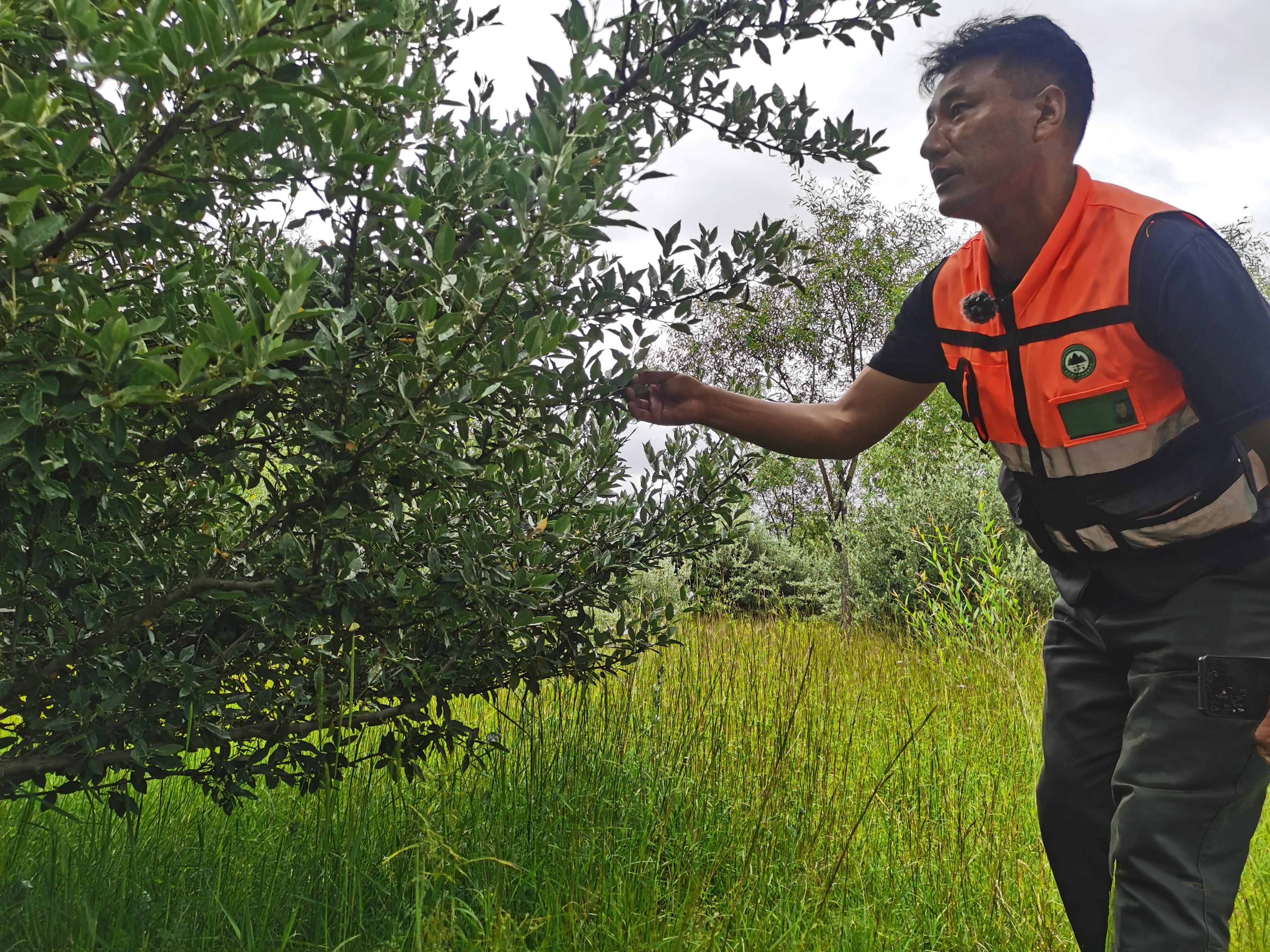 濕地管護(hù)員旺扎查看樹(shù)木生長(zhǎng)情況 中國(guó)經(jīng)濟(jì)網(wǎng)記者魏金金/攝