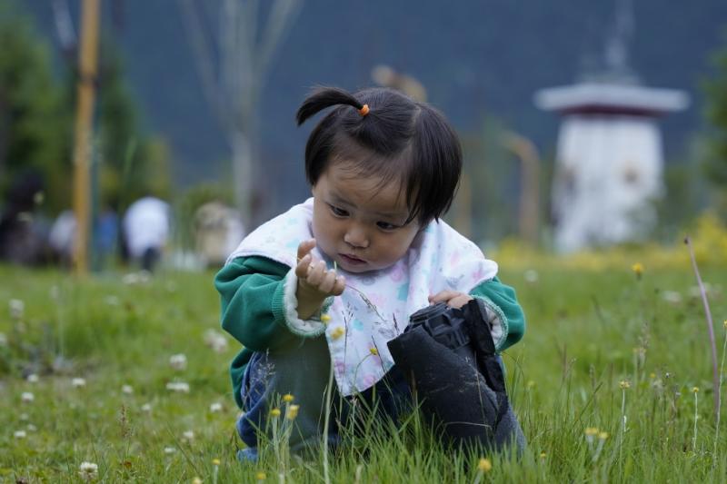 在工布公園草坪上玩耍的孩子(7月21日攝)。朱俊 攝?