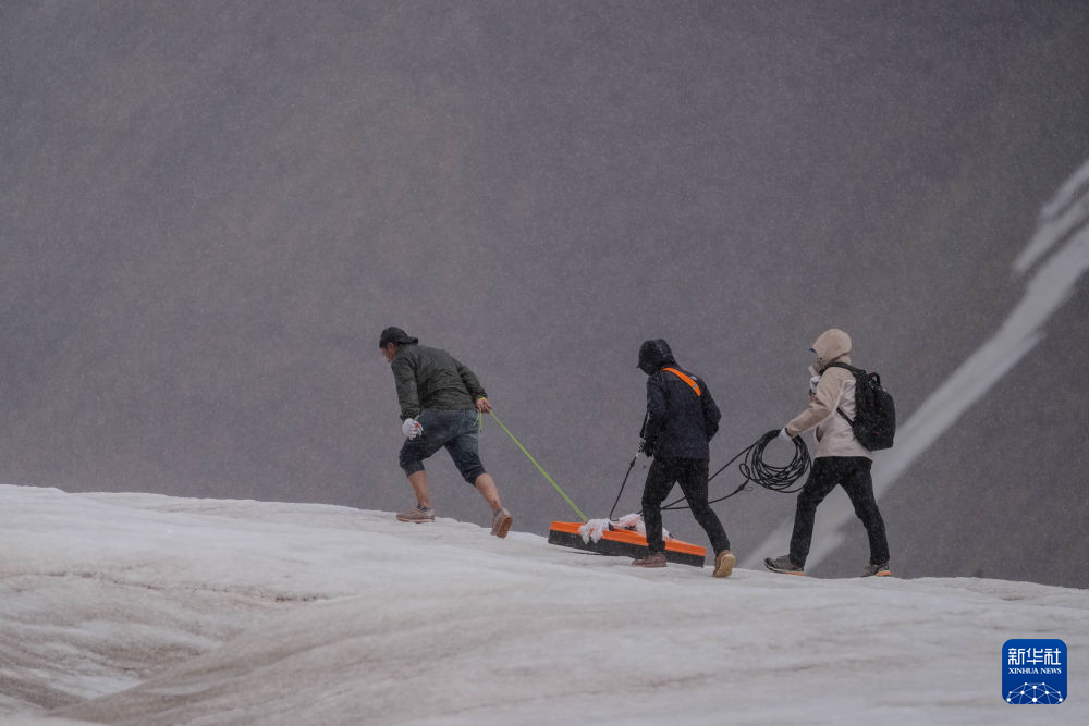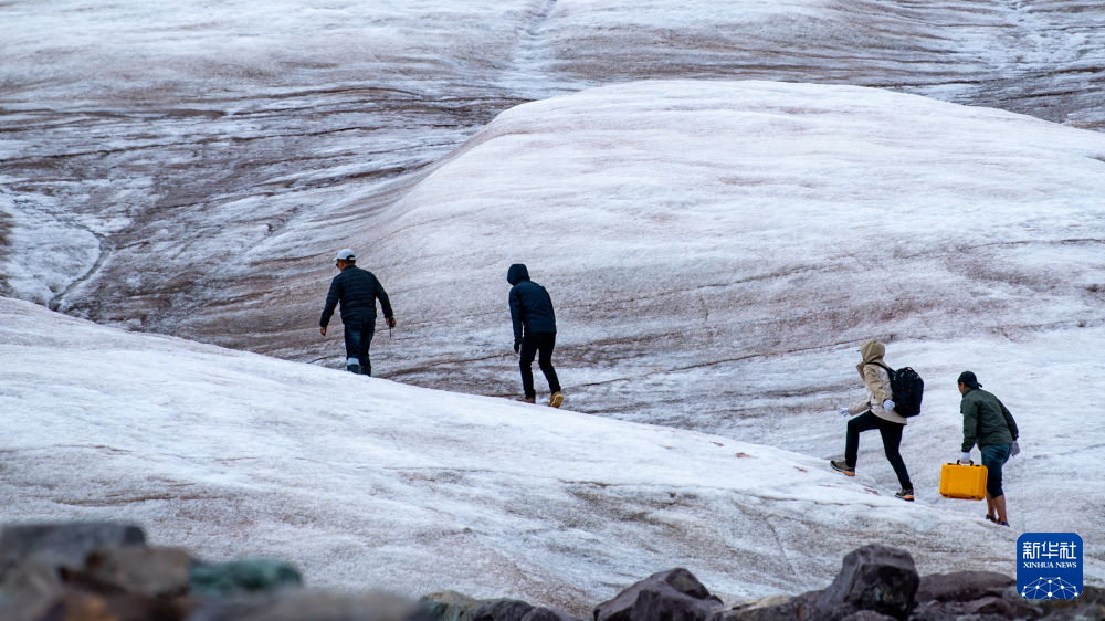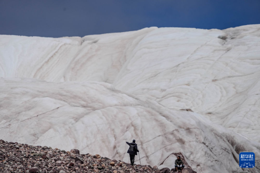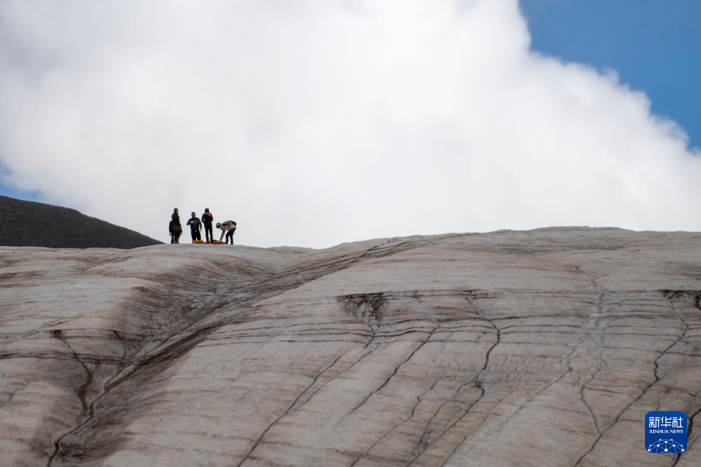7月25日,在冬克瑪?shù)妆?,科考隊員在探測冰川。新華社記者 伍志尊 攝
