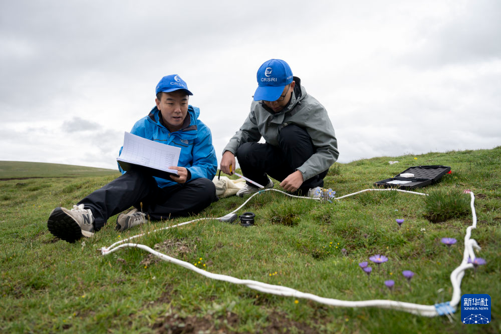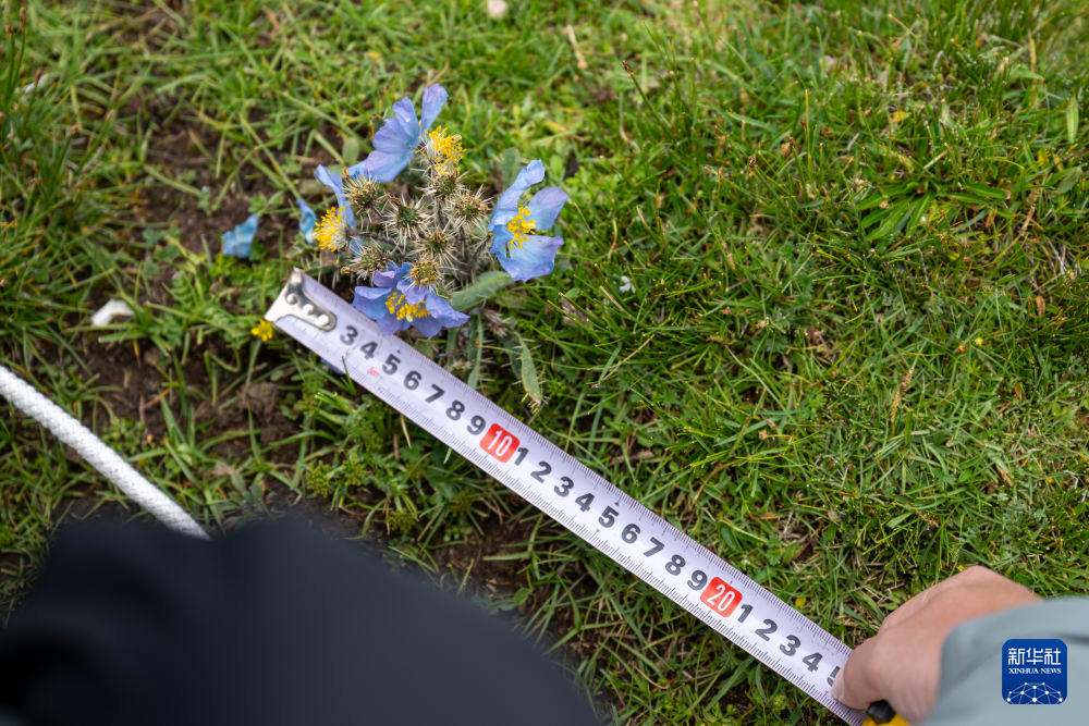 7月22日,在當(dāng)曲源,科考隊員在測量樣方內(nèi)的植物指標(biāo)。新華社記者 伍志尊 攝