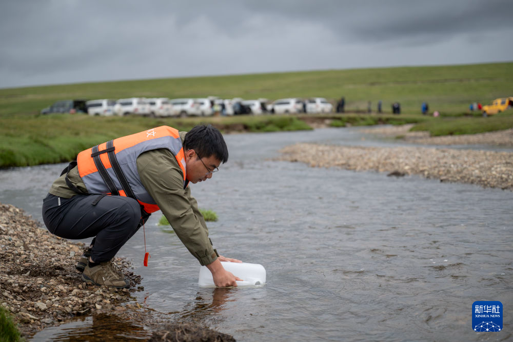 7月22日,科考隊員在當(dāng)曲源進行水樣采集工作。新華社記者 陳杰 攝