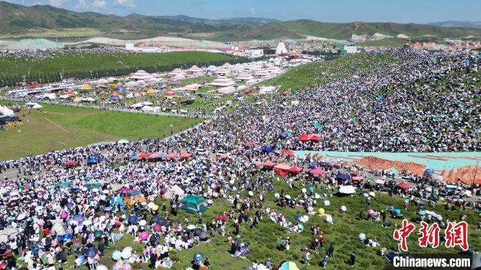 中國(guó)藏族網(wǎng)通訊 8月4日,第22屆九色甘南香巴拉旅游藝術(shù)節(jié)在甘肅省甘南藏族自治州當(dāng)周草原開(kāi)幕。人們身著節(jié)日盛裝載歌載舞、歡聚一堂,馬隊(duì)巡游、千人鍋莊舞等活動(dòng)精彩上演。九色甘南香巴拉旅游藝術(shù)節(jié)既是民眾浪山聚會(huì)的節(jié)日盛會(huì),也是展現(xiàn)發(fā)展成就、擴(kuò)大對(duì)外開(kāi)放的重要窗口,更是展示民俗文化、促進(jìn)廣泛交往交流交融的有效載體。(無(wú)人機(jī)照片)中新社記者 九美旦增 攝