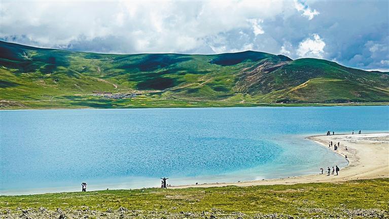 圖為游客在羊卓雍錯(cuò)游玩。記者 格桑倫珠 攝