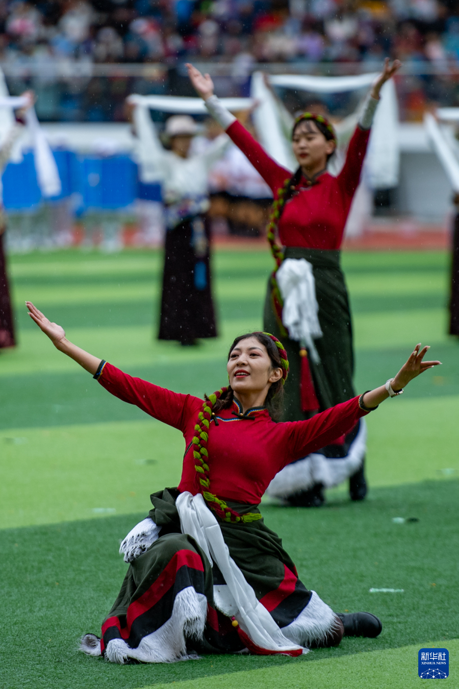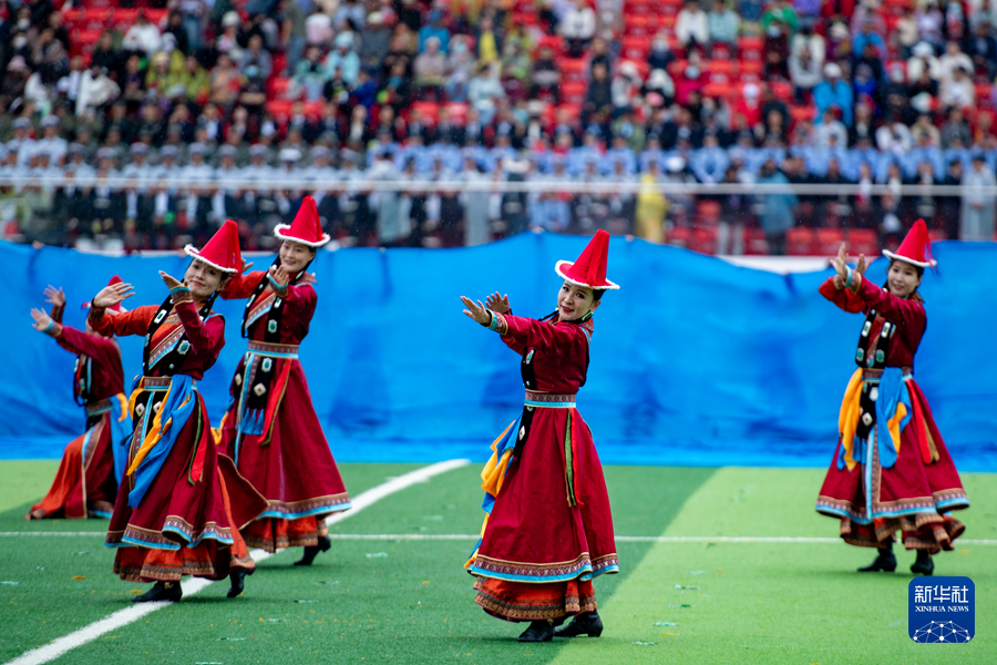 8月8日,在海西蒙古族藏族自治州德令哈市,演員在文藝展演活動上表演。新華社 潘彬彬 攝