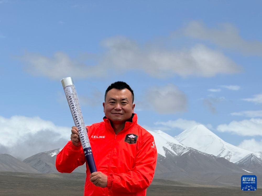 8月8日,馬嘯在玉珠峰登山小鎮(zhèn)。新華社發(fā)(曲麻萊縣委宣傳部 供圖)