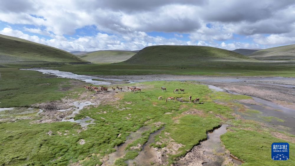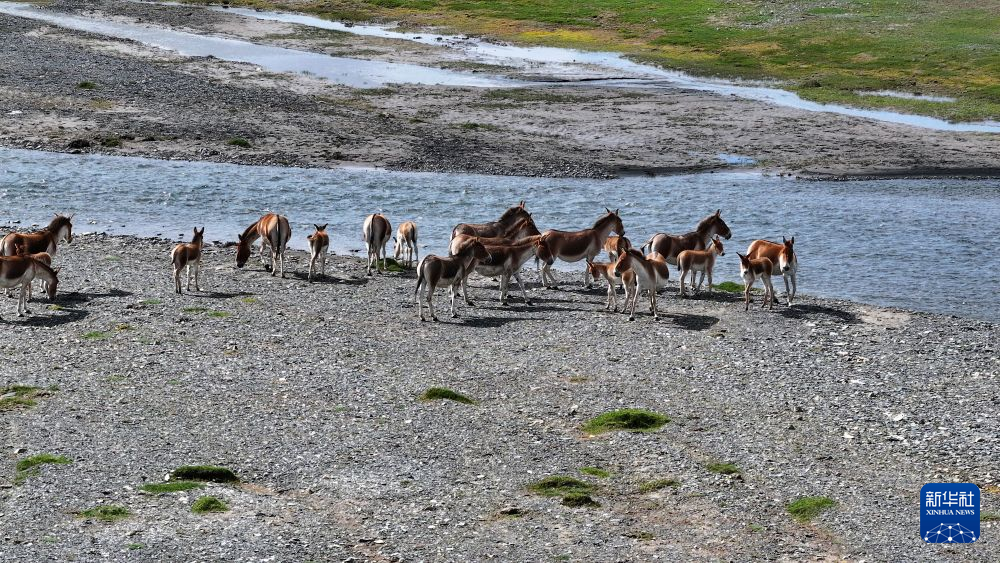 8月9日在青海省玉樹藏族自治州曲麻萊縣境內(nèi)拍攝的藏野驢(無(wú)人機(jī)照片)。新華社 昂江 攝