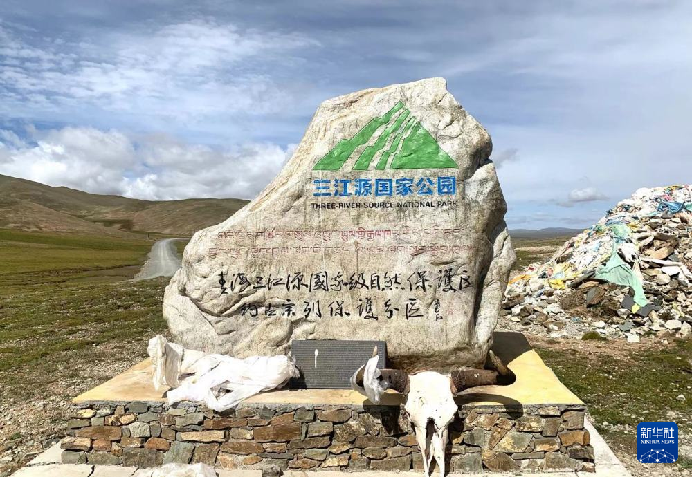 2020年8月27日在青海省玉樹藏族自治州曲麻萊縣境內(nèi)拍攝的約古宗列保護(hù)分區(qū)石碑。新華社記者 李琳海 攝