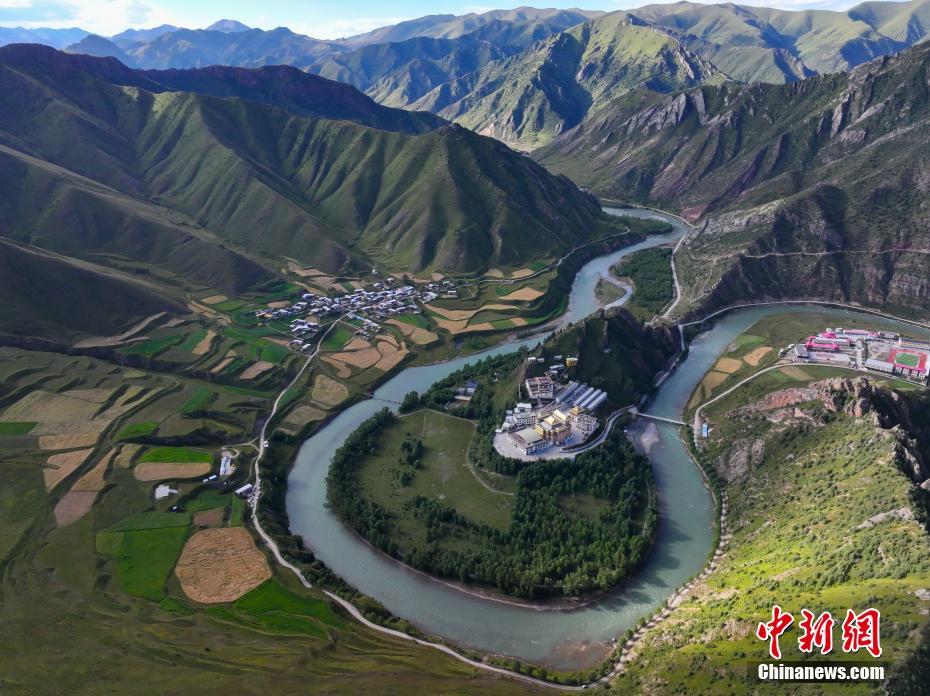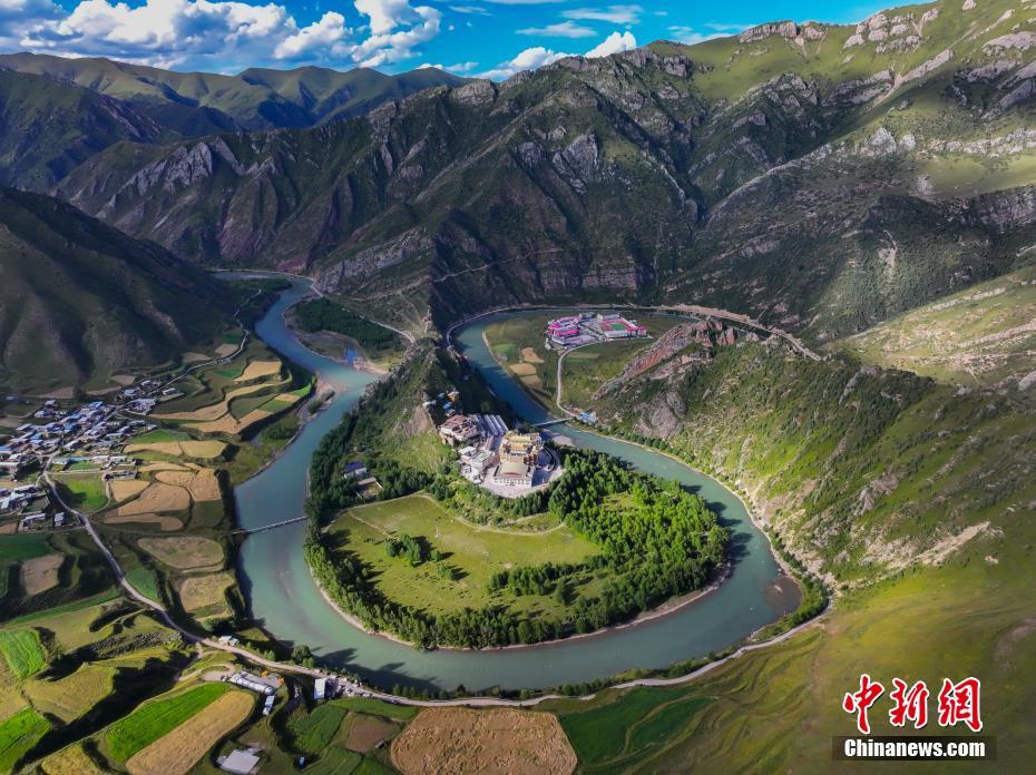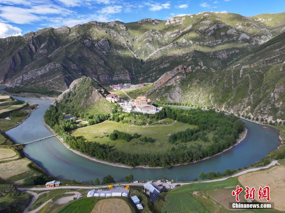 青海省玉樹藏族自治州囊謙縣地處青海省最南端、三江源腹地,瀾滄江上游五條支流貫穿全境,在該縣毛莊鄉(xiāng),瀾滄江東源孜曲蜿蜒而下,古老的尕丁寺被孜曲包圍,成為當(dāng)?shù)鬲毺仫L(fēng)景。