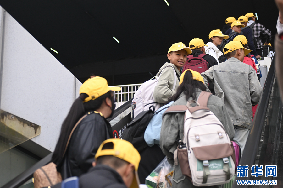 學(xué)生及家長(zhǎng)、老師在西寧火車站站前廣場(chǎng)合影。新華社記者 張龍 攝