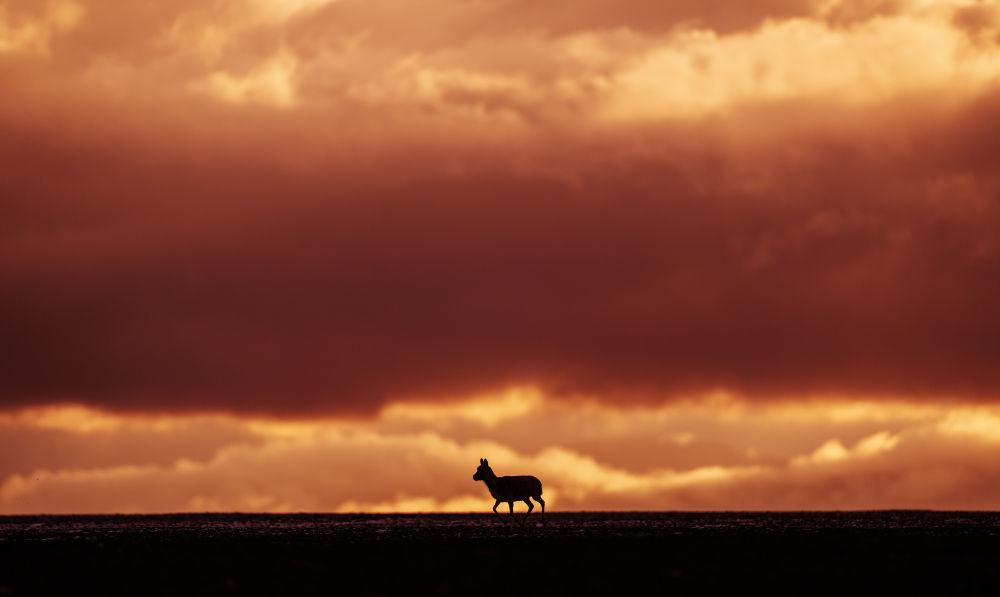 6月13日傍晚在藏北羌塘國家級自然保護(hù)區(qū)拍攝的一只藏羚羊。新華社記者 費(fèi)茂華 攝