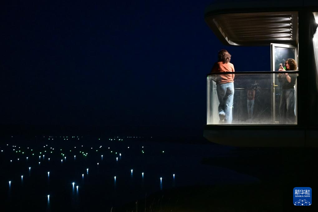 10月17日,龍羊峽庫(kù)區(qū)水面亮起盞盞漁燈(無(wú)人機(jī)照片)。新華社記者 齊芷玥 攝