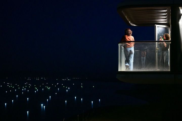 “我這會兒下網(wǎng),等到凌晨1點(diǎn)再出船起網(wǎng)。天快亮了,帶著一箱箱小銀魚回來。”許昌邊固定船錨邊說。十多年來,他每年漁期都在湖邊度過——凌晨出船,拂曉而歸。說話間,他回到岸邊帳篷,拉下電閘。眨眼間,一串串漁燈亮起,融入湖面燈海。