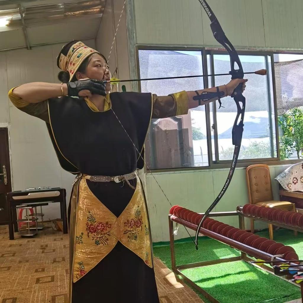 2023年,在百巴鎮(zhèn)豐收節(jié)的響箭比賽上,巴桑卓瑪作為唯一一位女射手,和另外9名隊員一起為隊伍取得了第三名?!斑@幾年到我這里體驗和練習響箭的人越來越多,我還教不少阿佳(藏語“姐姐”之意)練習拉弓。”巴桑卓瑪希望能組織起西藏第一支女子響箭隊。