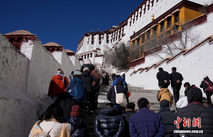 中國藏族網(wǎng)通訊 1月7日,游客在布達(dá)拉宮參觀游覽。當(dāng)前正值第八輪“冬游西藏”市場促進(jìn)活動(dòng)開展期間,西藏推出包括布達(dá)拉宮在內(nèi)的多家景區(qū)免門票優(yōu)惠,吸引游客前來參觀。中新社記者 李林 攝