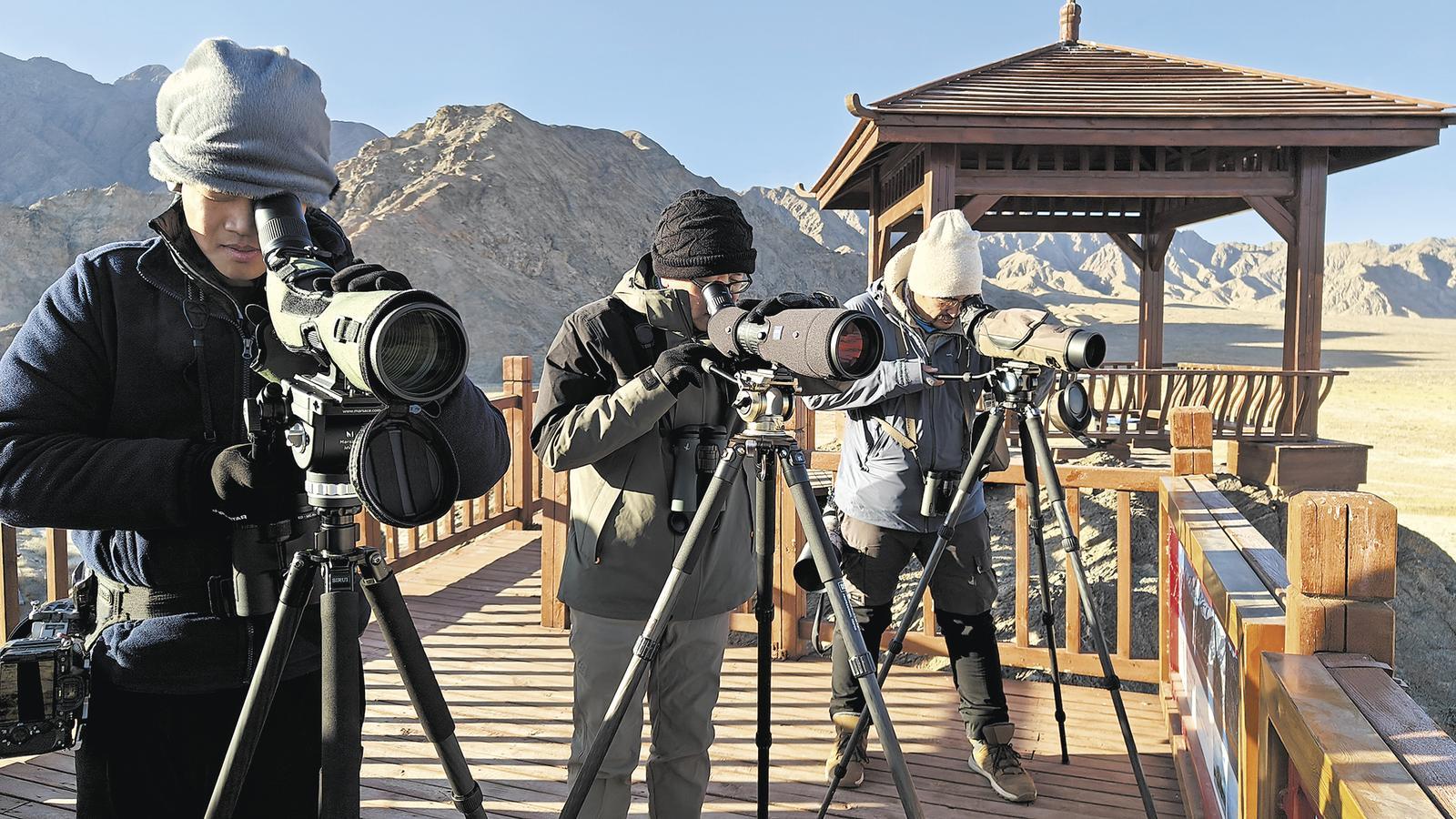 我試著照他說的,去數(shù)湖面上剩下的大天鵝、普通秋沙鴨、小白額雁,慢慢竟也跟上了節(jié)奏。說起來,聚焦生態(tài)報(bào)道這些年,青海的野生動物大多能認(rèn)個(gè)臉熟,可一到鳥類就犯了難。全省記錄在冊的鳥有532種,我能叫上名字的,兩只手?jǐn)?shù)得過來。這次出來,算是補(bǔ)上一堂重要的課。