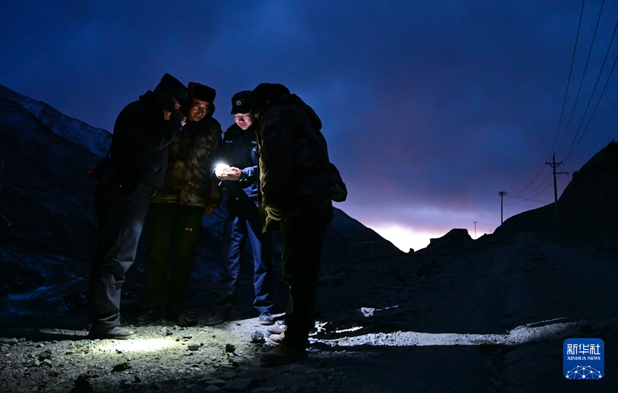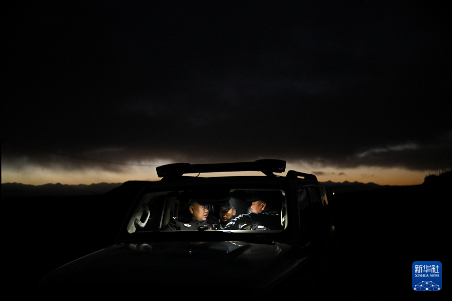 1月8日晚,在青海省海北藏族自治州門(mén)源回族自治縣境內(nèi)的老虎溝,民警在巡護(hù)途中休息。新華社記者 張龍 攝