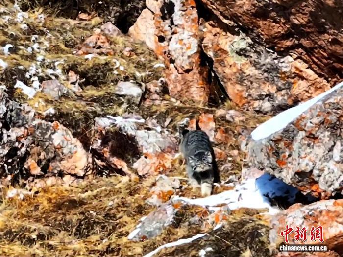 圖為兔猻在巖石間溜達。陳天貴 攝