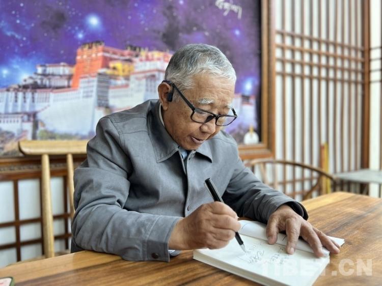 圖為2023年10月巴桑羅布在個人著作《倉央嘉措略傳》新書發(fā)布會上為讀者簽名 攝影:德吉卓瑪