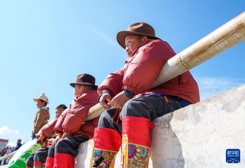 2月20日,觀眾席上的小朋友在觀看馬術表演。新華社記者 丁增尼達 攝
