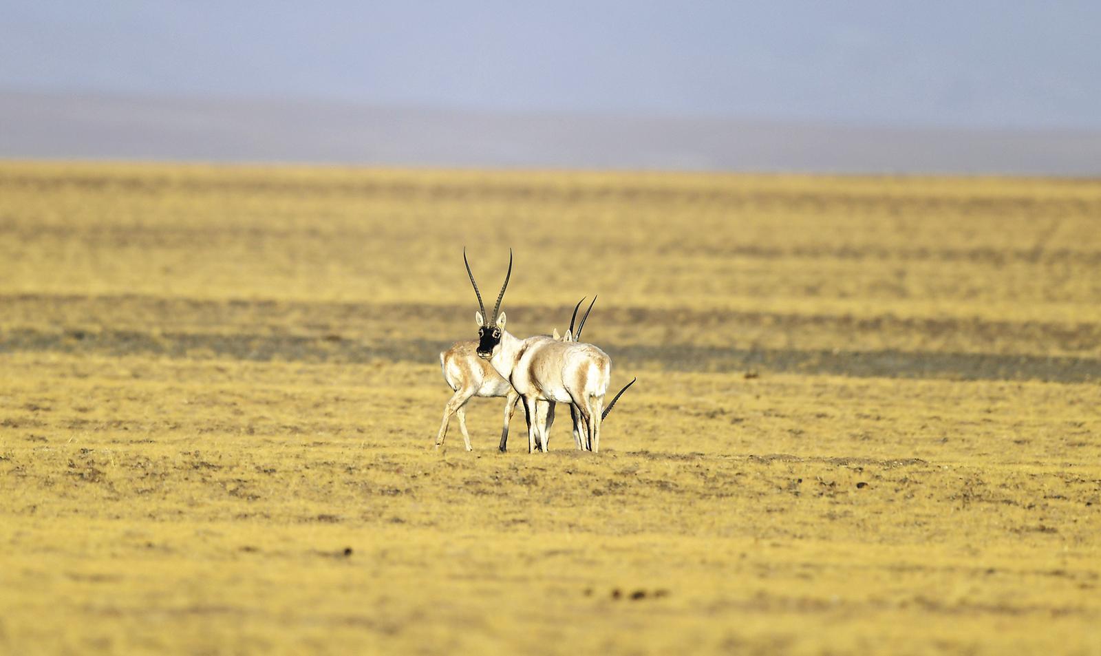 觀察遠方的藏羚羊。
