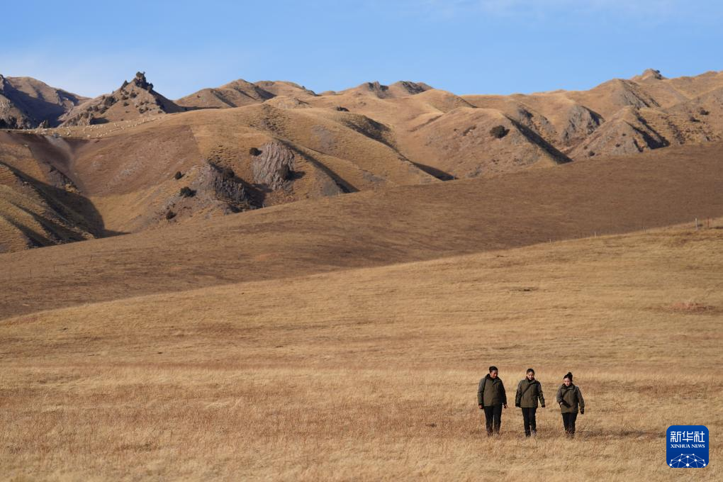 3月6日,祁連山國家公園(候選區(qū))青海片區(qū)青陽溝管護站女子管護員在巡護返程途中。新華社記者 張龍 攝