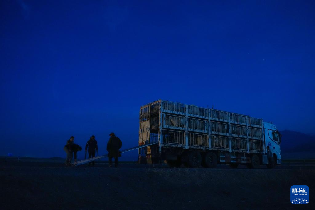 3月7日,從借牧點轉(zhuǎn)運羊群的車輛回到青海省海北藏族自治州祁連縣阿柔鄉(xiāng)草大板村。新華社記者 張龍 攝
