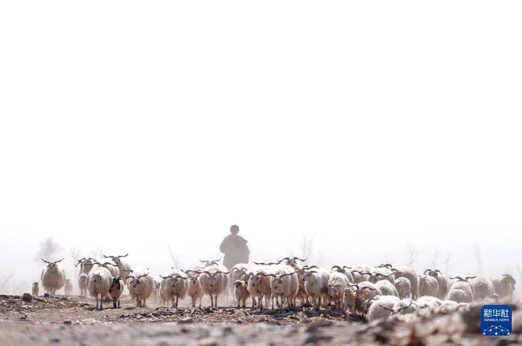 3月7日,在青海省海北藏族自治州祁連縣阿柔鄉(xiāng)草大板村,牧民準(zhǔn)備將羊群放歸草原。新華社記者 張龍 攝