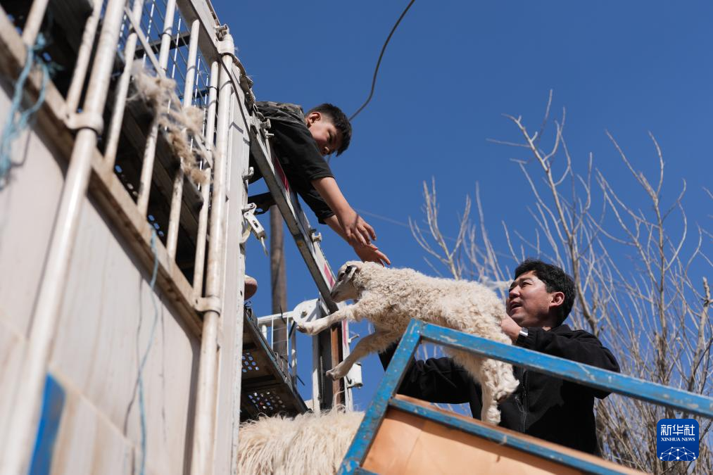 3月7日,在青海省海北藏族自治州祁連縣阿柔鄉(xiāng)草大板村,東寶準(zhǔn)備將車輛中的羊群放歸草原。新華社記者 張龍 攝
