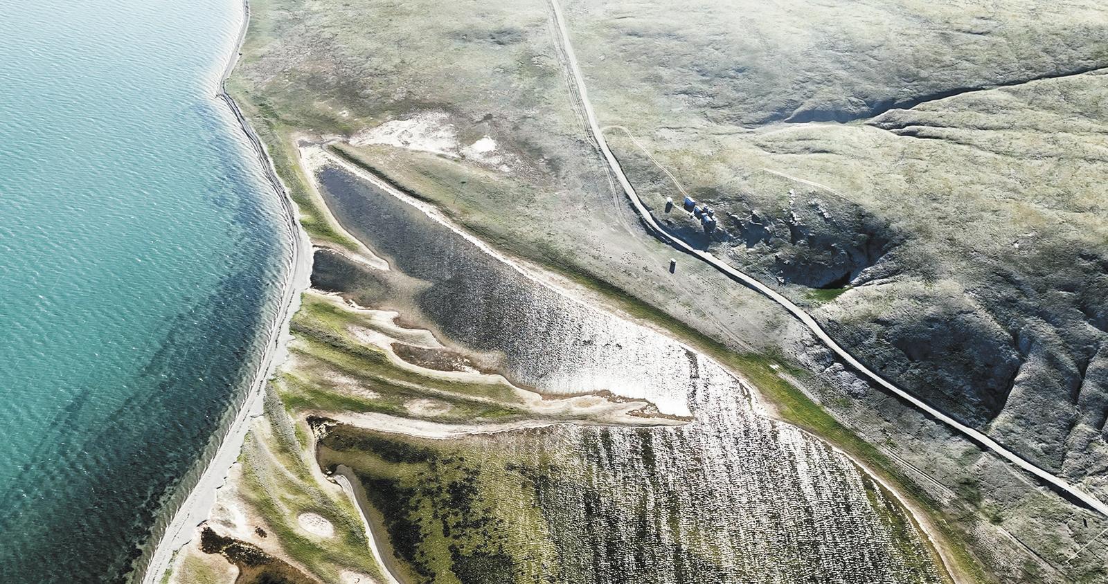 2025年7月25日拍攝的“尕日塘秦刻石”所在地青海省果洛藏族自治州瑪多縣扎陵湖北岸(無人機照片)。 新華社記者 杜笑微 攝