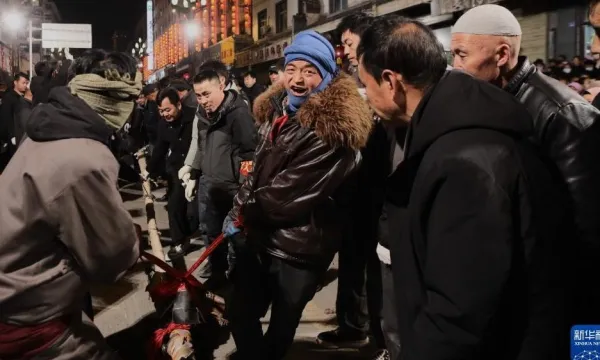 “萬人扯繩”是甘肅省甘南藏族自治州臨潭縣每年農(nóng)歷正月十四至十六舉行的傳統(tǒng)民俗活動,相傳已有600多年歷史。