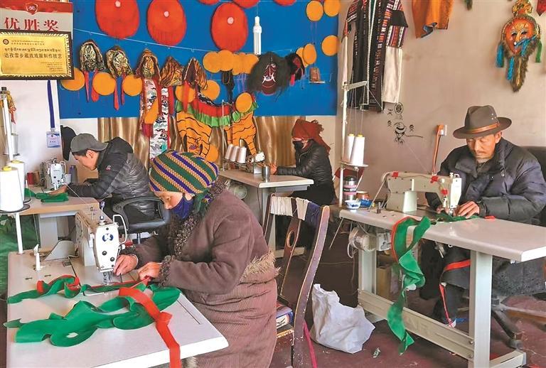 技藝的創(chuàng)新與市場(chǎng)的拓展,也為家鄉(xiāng)的農(nóng)牧民群眾帶來(lái)了實(shí)實(shí)在在的收益。始終心系群眾的米瑪堅(jiān)才,系統(tǒng)培訓(xùn)了18名農(nóng)牧民,使他們從零基礎(chǔ)慢慢成長(zhǎng)為熟練掌握藏戲服飾制作技藝的手工藝人,不用背井離鄉(xiāng)就能在家門(mén)口掙錢。“以前靠種地過(guò)日子,收入不穩(wěn)定,現(xiàn)在在合作社有固定收入,一年下來(lái)能掙3萬(wàn)多元,顧家掙錢兩不誤,特別知足?!焙献魃绲霓r(nóng)牧民員工談起這份工作,臉上滿是笑意。