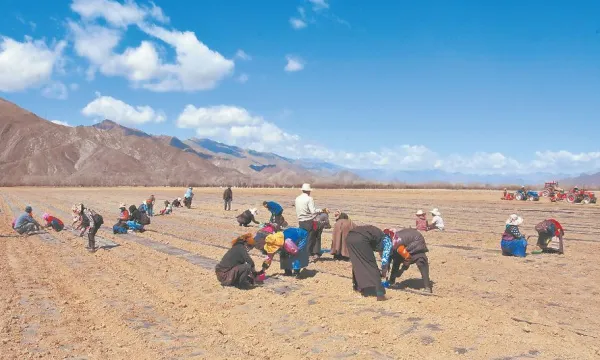 圖為在技術(shù)人員指導(dǎo)下,當(dāng)?shù)剞r(nóng)民種植藥材。記者 格桑倫珠 攝 近日,總投資2500萬元的西藏拉薩市林周縣藏藥材種植項目正式開工,該項目由林周縣凈土產(chǎn)業(yè)投資開發(fā)有限公司和西藏