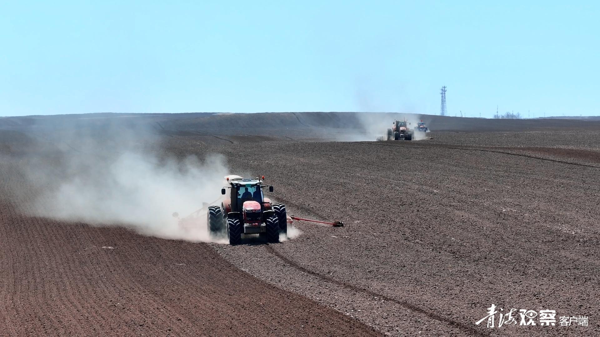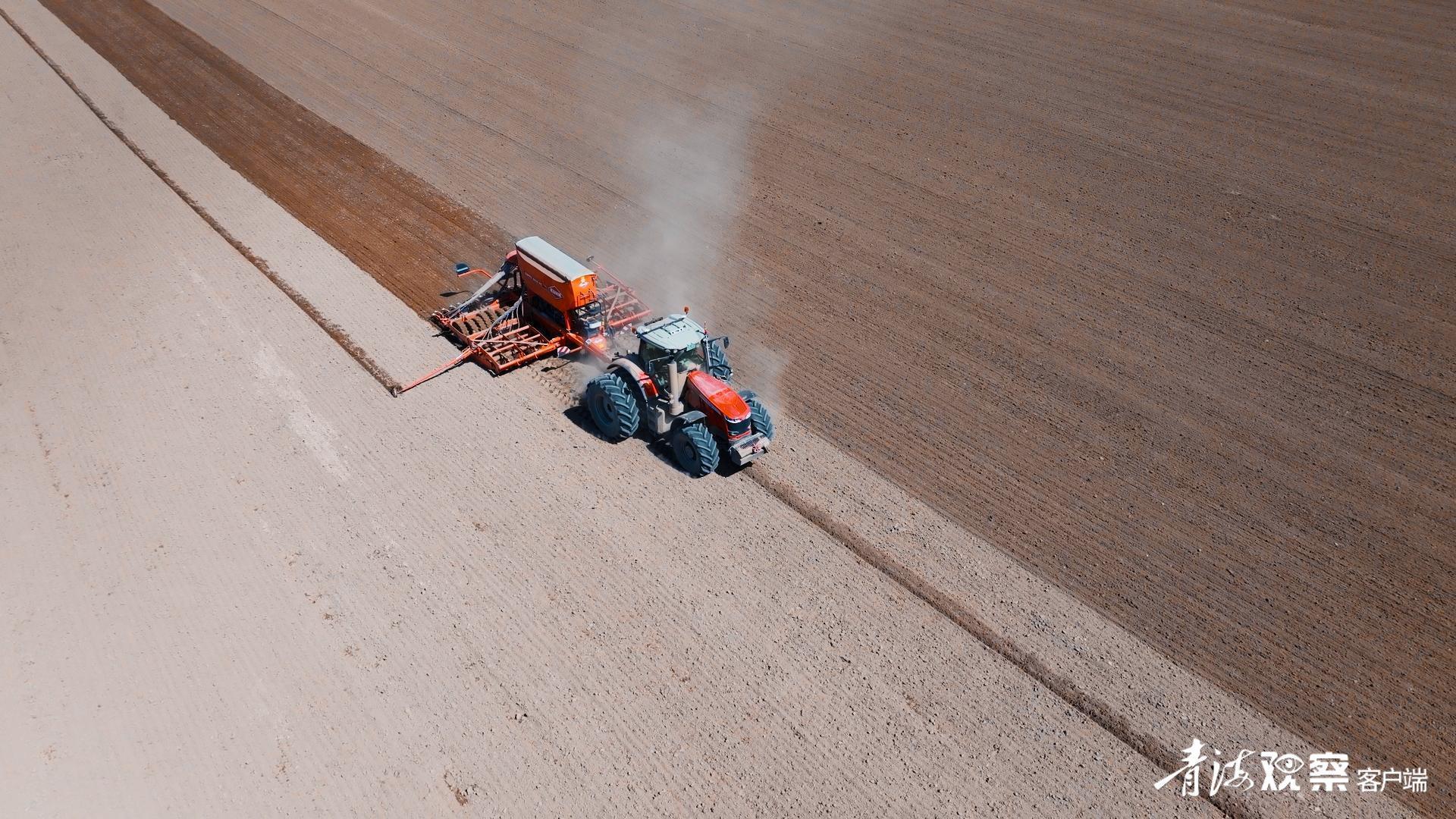 4月11日,海南藏族自治州貴南縣貴南牧場(chǎng)的天佑德青稞酒青稞原糧種植基地內(nèi),數(shù)輛北斗導(dǎo)航大型播種機(jī)在田間來(lái)回穿梭,呈現(xiàn)出了壯觀的高原現(xiàn)代農(nóng)業(yè)畫(huà)卷。