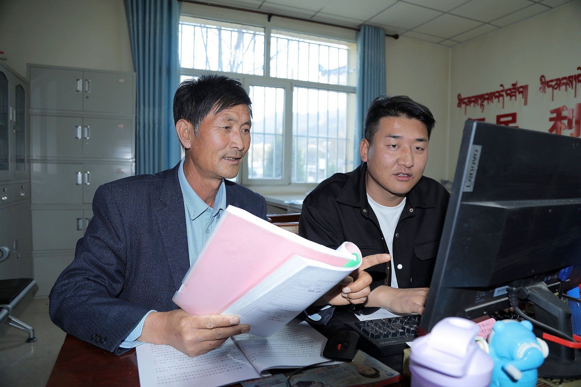 楊明發(fā)和黃永波核對(duì)村級(jí)發(fā)展規(guī)劃。