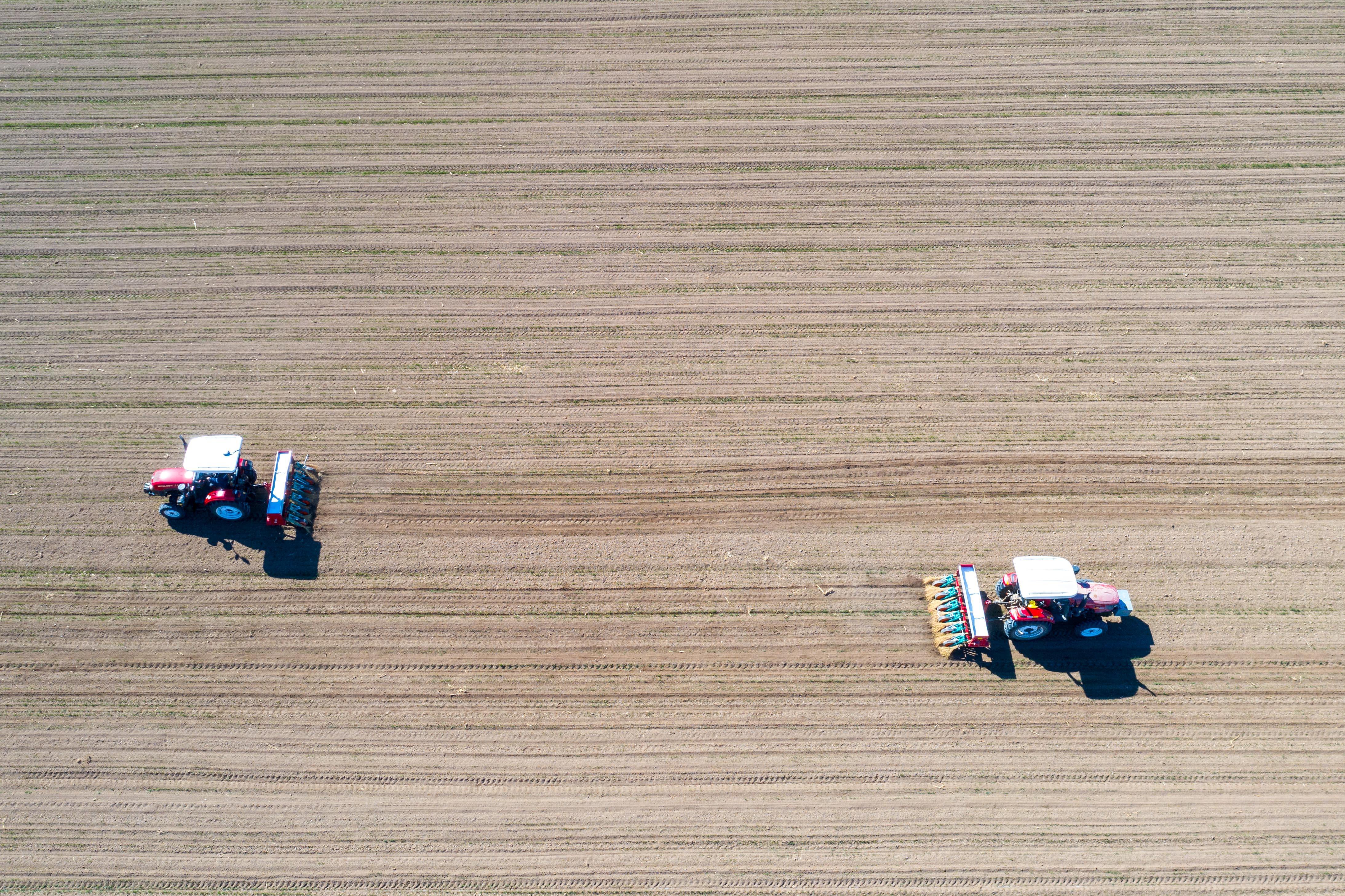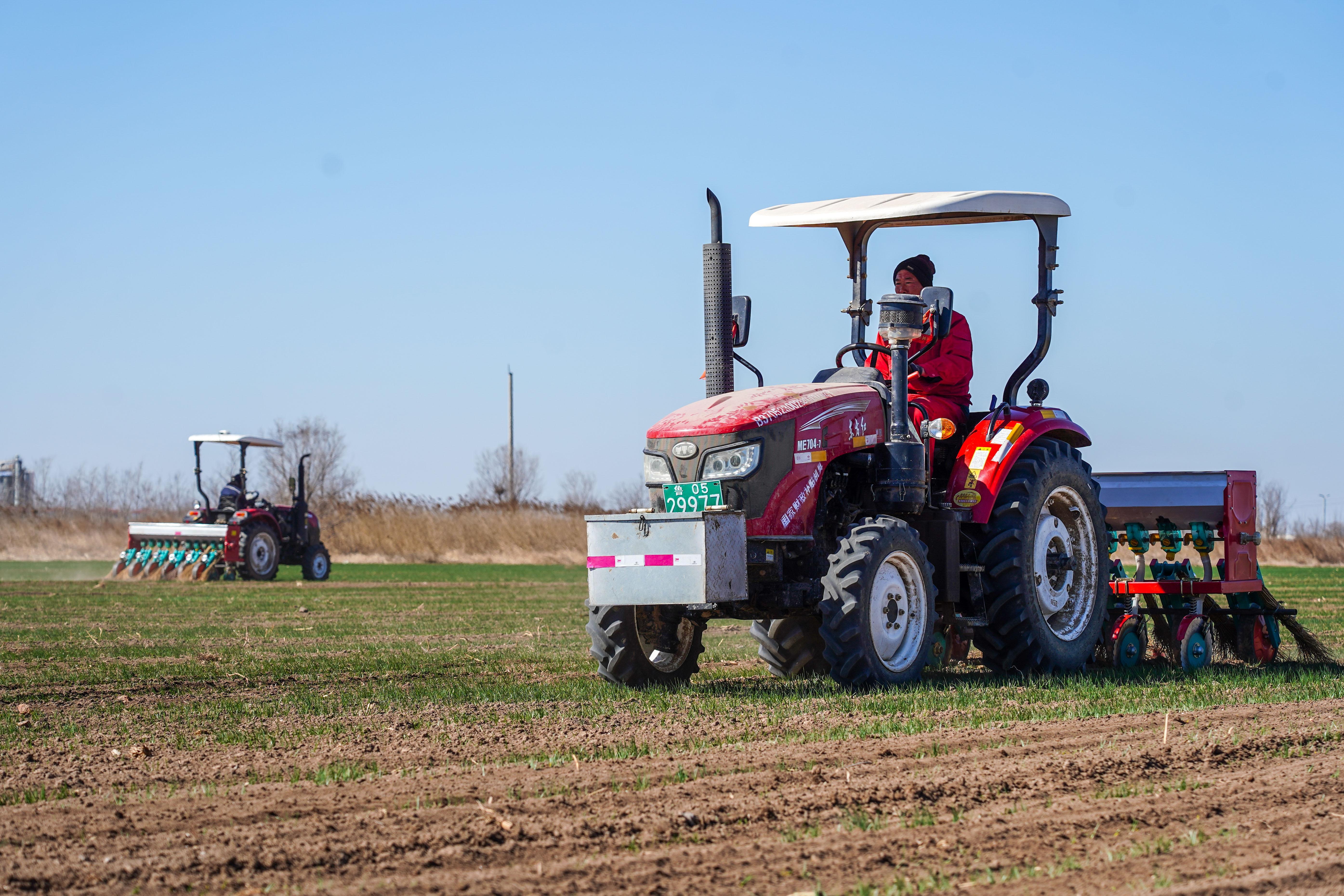 山東省黃河三角洲農(nóng)業(yè)高新技術(shù)產(chǎn)業(yè)示范區(qū),工作人員搶抓農(nóng)時(shí)開展春種,田間地頭一片忙碌。新華社記者朱崢 攝